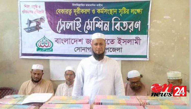 বেকারত্ব দূরীকরণ ও কর্মসংস্থান সৃষ্টির লক্ষ্যে ফেনীর সোনাগাজীতে বাংলাদেশ জামায়াতে ইসলামীর উদ্যোগে কর্মজীবী নারীদের মাঝে শুক্রবার সকালে উপজেলা কার্যালয়ে সেলাই মেশিন বিতরণ করা হয়েছে। উক্ত অনুষ্ঠানে প্রধান অতিথি ছিলেন ফেনী জেলা জামায়াতে ইসলামীর নবনির্বাচিত আমীর মাওলানা মুফতি আবদুল হান্নান। বিশেষ অতিথি ছিলেন ফেনী জেলা জামায়াতের শুরা ও কর্মপরিষদ সদস্য সাবেক আমিরাবাদ ইউপি চেয়ারম্যান ইঞ্জিনিয়ার ফখরুদ্দিন, উপজেলা জামায়াতের আমীর মাওলানা মোহাম্মদ মোস্তফা ও সেক্রেটারি এ এস এম বদরুদ্দোজা। আরও বক্তব্য রাখেন উপজেলা কর্মপরিষদ সদস্য আমিরুল ইসলাম মাসুদ, চরচান্দিয়া ইউনিয়ন আমীর মো: মজিবুর রহমান ও চরচান্দিয়া ১নং ওয়ার্ড সভাপতি কামরুল ইসলাম প্রমূখ।