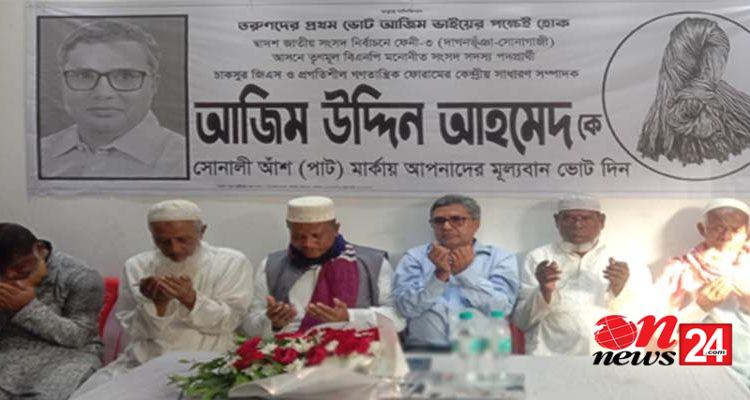 ফেনী-৩ আসনে তৃণমূল বিএনপির প্রার্থী, প্রগতিশীল গণতান্ত্রিক ফোরামের কেন্দ্রীয় সাধারণ সম্পাদক আজিম উদ্দিনের সোনালী আঁশের সোনাগাজী অফিস সোমবার বিকালে পৌর শহরের খাদ্য গুদাম এলাকায় উদ্বোধন করা হয়েছে। মোনাজাত পরিচালনা করেন সোনাগাজী হাসপাতাল মসজিদের খতিব মাও. একরামুল হক।