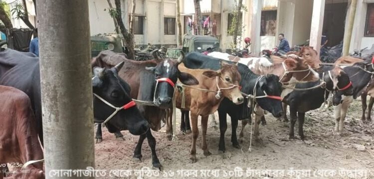 সোনাগাজীতে থেকে লুন্ঠিত ১৬ গরুর মধ্যে ১০টি চাঁদপুরের কঁচুয়া থেকে উদ্ধার