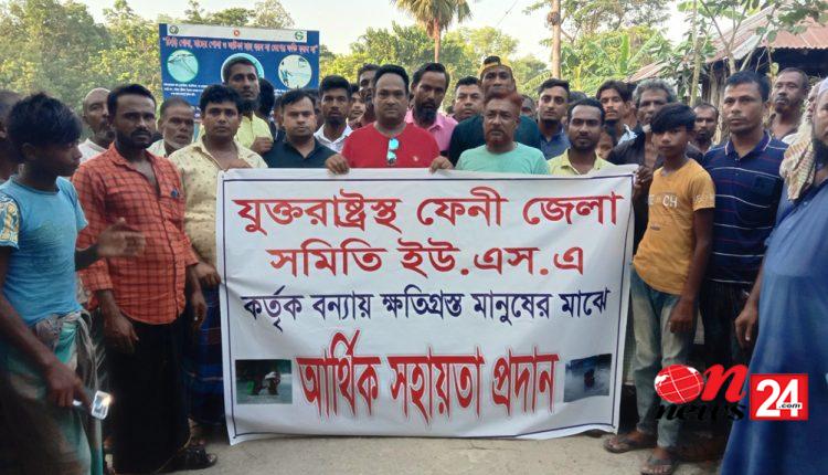 সোনাগাজীতে বন্যার্তদের মাঝে যুক্তরাষ্ট্রস্থ ফেনী জেলা সমিতির নগদ অর্থ সহায়তা