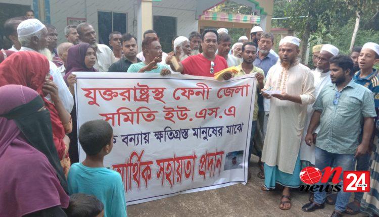 সোনাগাজীতে বন্যার্তদের মাঝে যুক্তরাষ্ট্রস্থ ফেনী জেলা সমিতির নগদ অর্থ সহায়তা