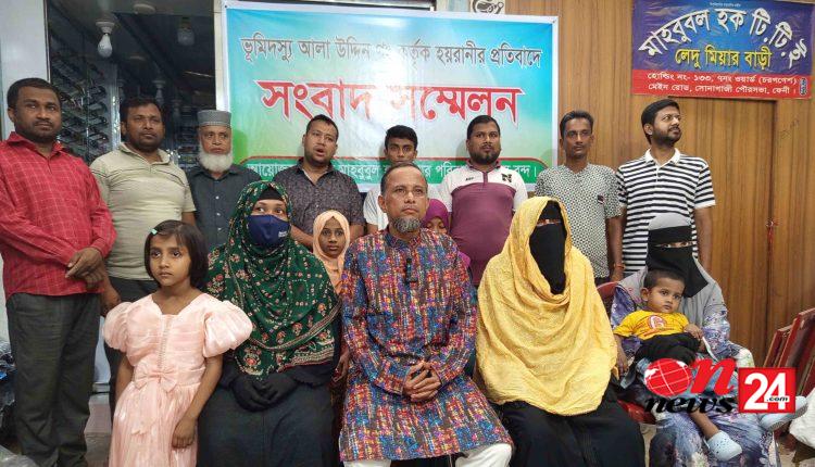 ফেনীর সোনাগাজীতে আলা উদ্দিন নামে এক ভুমিদস্যু ও পল্লী বিদ্যুৎ সমিতির কতিপয় অসাধু কর্মকর্তার বিরুদ্ধে সংবাদ সম্মেলন করেছেন হয়রানির শিকার একটি পরিবার। শনিবার সকাল ১১টায় পৌর শহরের মাহবুব মার্কেটের মালিক ও ব্যবসায়ীরা ওই মার্কেটের ভেতরে এ সংবাদ সম্মেলন করেন। তারা অভিযোগ করেন, সোনাগাজী বাজারেের মধ্যবর্তী স্থানে পাকিস্তান আমল থেকে প্রথমে বাড়ি ও ২০০০ সালে মার্কেট নির্মাণ করে ১৭ দশমিক ৮৩ শতক জমিতে ভোগ দখলে রয়েছেন। কিন্তু পৌর শহরের ৭নং ওয়ার্ডের বাসিন্দা আলা উদ্দিন গং অসুধোপায় অবলম্বন করে ৯শতক জমির বিএস খতিয়ান সৃজন করেন। তিনি মার্কেটের মালিকানা দাবি করে বিদ্যুৎ সংযোগ বিচ্ছিন্নের জন্য পল্লী বিদ্যুত অফিসে আবেদন করেন। পল্লী বিদ্যুতের অসাধু কর্মকর্তারা আলা উদ্দিনের যোগসাজসে মার্কেটের ভাড়াটিয়া ব্যব্সায়ীদের বিদ্যুৎ সংযোগ বিচ্ছিন্ন করার পাঁয়তারা করছেন। বিষয়টি জানার পর মার্কেটের মালিক পক্ষ রিভিশন মামলা দায়ের করেছেন এবং পল্লী বিদ্যুতের ডিজিএমকে আইনী নোটিস দিয়েছেন। তারা দাবি করেন খরিদ সূত্রে মালিক দখলকার থেকে তারা দীর্ঘ ষাট বছরের অধিক সময় ধরে উক্ত জমিতে বসবাস করে আসছেন ও ২৫ বছর ধরে মার্কেট নির্মাণ করে ব্যবসা করে আসছেন। বিএস খতিয়ানের গেজেটও তাদের নামে প্রচারিত হয়েছে। হঠাৎ করে আলা উদ্দিন নামের ওই ভুমিদস্যু ও তার সহযোগীরা মার্কেটের মালিক ও ভাড়টিয়া ব্যবসায়ীদের হয়রানি করে আসছেন। তারা যদি উক্ত জমিতে মালিক হয়ে থাকেন তাহলে আইনী মোকাবেলার মধ্যমে আসুক। বল প্রয়োগ করে ও অনৈতিকভাবে তাদেরকে হয়রানি থেকে বাঁচতে প্রশাসনের ঊর্ধ্বতন কর্মকর্তা সহ আইন শৃঙ্খলা বাহিনীর হস্তক্ষেপ কামনা করেছেন। এ সময় মার্কেটের মালিক পক্ষ মো. জসিম উদ্দিন, তার মা দেল আফরোজ বেগম,তার ভাইয়ের স্ত্রী ফেরদৌস আরা মুক্তা, মার্কেটের ভাড়াটিয়া ব্যবসায়ী আবদুল্লা আল মামুন ও সাইফুল ইসলাম প্রমূখ বক্তব্য রাখেন।