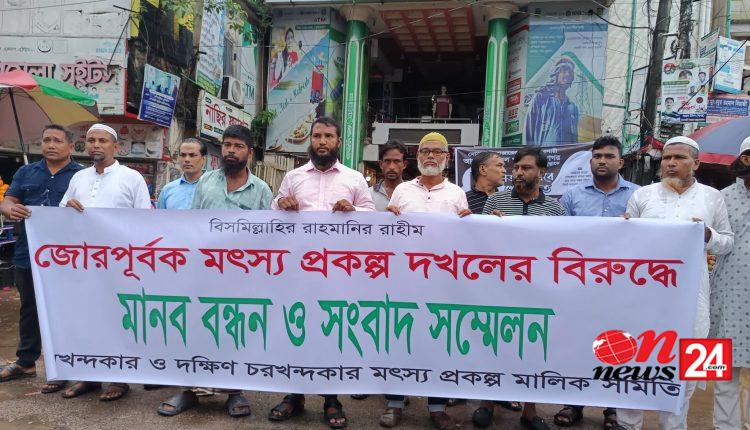 সোনাগাজীতে মৎস্য চাষীদের নিরপত্তার দাবিতে মানববন্ধন