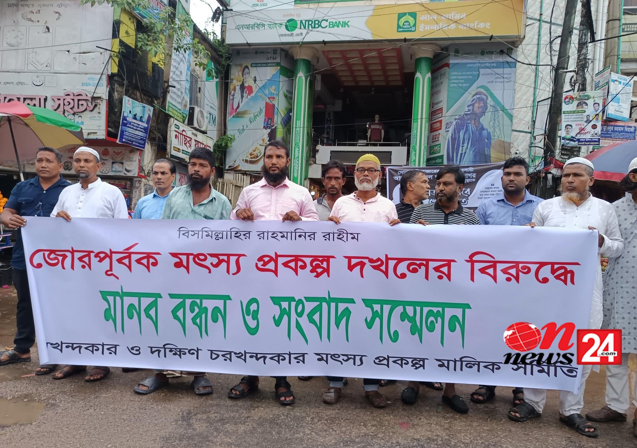 সোনাগাজীতে মৎস্য চাষীদের নিরপত্তার দাবিতে মানববন্ধন