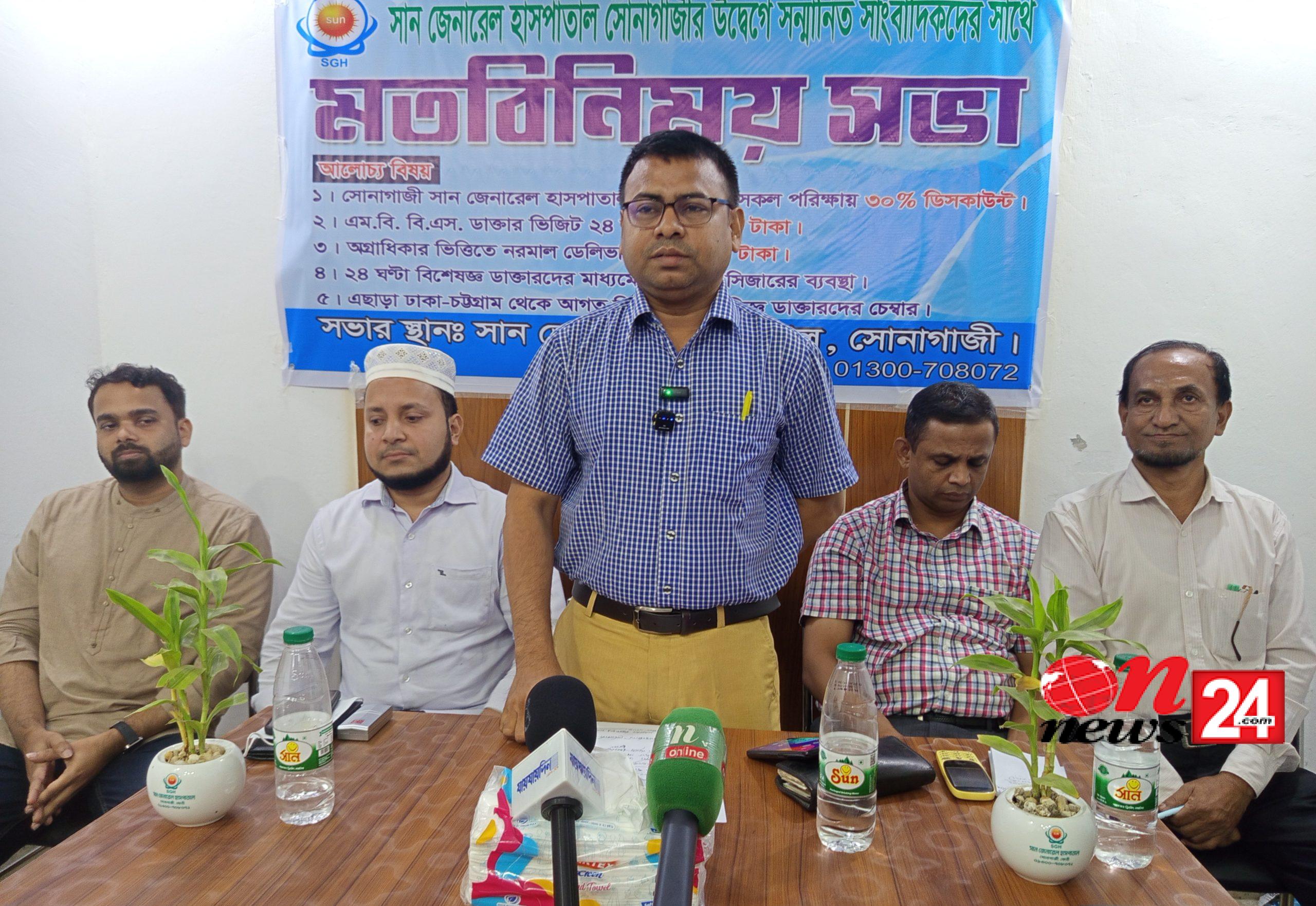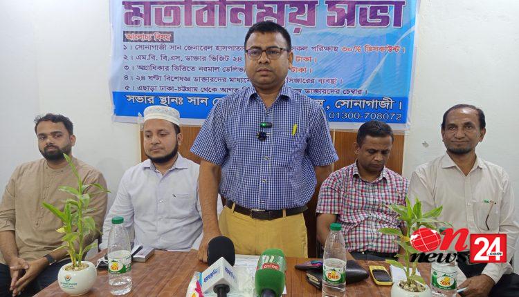 ফেনীর সোনাগাজীতে স্বল্প খরচে স্বাস্থ্য সেবা দিতে সাংবাদিকদের সাথে শনিবার দুপুরে মতবিনিময় সভা করেছেন সান জেনারেল নামে সোনাগাজীর একটি বেসরকারি হাসপাতালের কর্তৃপক্ষ।
