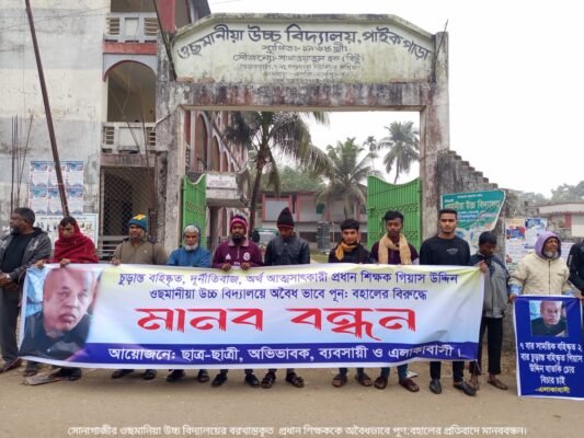সোনাগাজীর ওছমানিয়া উচ্চ বিদ্যালয়ের বরখাস্তকৃত প্রধান শিক্ষককে অবৈধভাবে পূণ:বহালের প্রতিবাদে মানববন্ধন