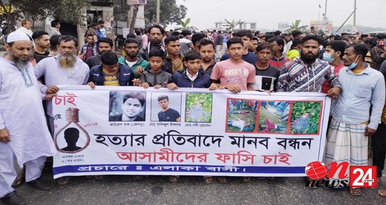 সোনারগাঁয়ে ডাকাত আখ্যা দিয়ে দুই যুবক হত্যার প্রতিবাদে মানববন্ধন