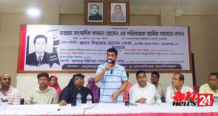 নারায়ণগঞ্জের সোনারগাঁয়ে মরহুম সাংবাদিক কামাল হোসেনের পরিবারকে আর্থিক সহায়তা প্রদান করা হয়েছে। শনিবার (৩০ জুলাই) বিকেলে সামাজিক সংগঠন ষোলোআনা ও সোনারগাঁয়ের সকল সাংবাদিকের যৌথ উদ্যোগে সোনারগাঁ উপজেলা পরিষদ অডিটরিয়ামে এ সহায়তা প্রদান করা হয়।