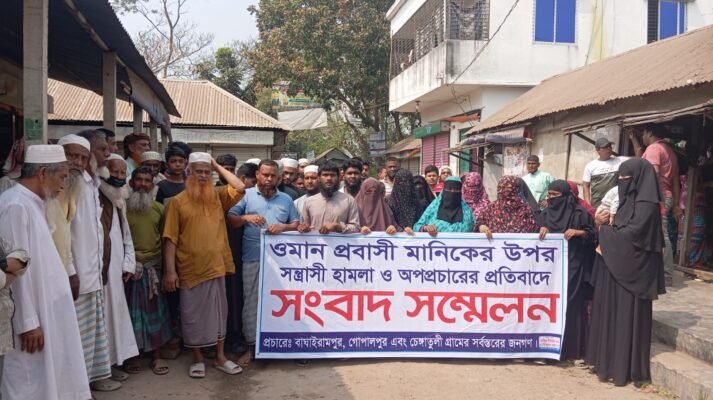 এদিকে ওমান প্রবাসী মানিকের উপর হামলা-নির্যাতন ও হত্যাচেষ্টার ও ফেসবুকে নানাহ কু-প্রচারের প্রতিবাদে সংবাদ সম্মেলন ও বিক্ষোভ মিছিল করে গোপালপুর গ্রামের নারী-পুরুষ।