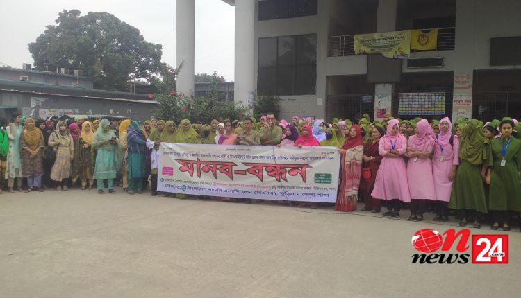 স্বতন্ত্র নার্সিং প্রশাসন রক্ষার দাবিতে কুড়িগ্রামে নার্সদের মানববন্ধন অনুষ্ঠিত