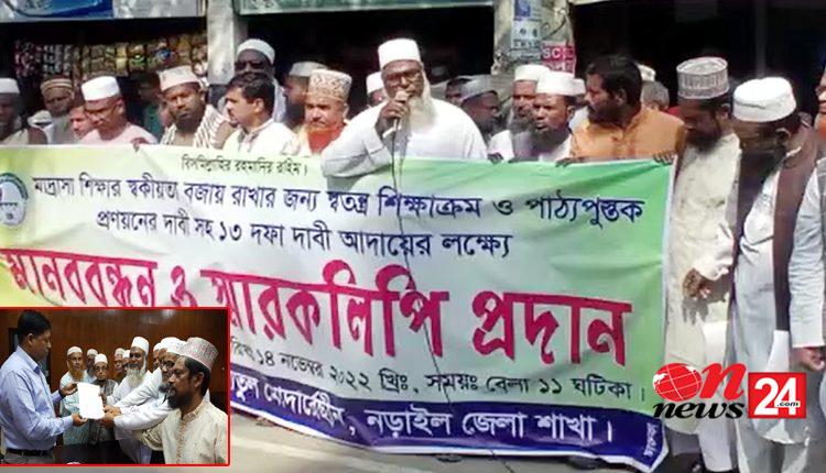 মানববন্ধন শেষে নড়াইল জেলা প্রশাসক মোহাম্মদ হাবিবুর রহমানের মাধ্যমে প্রধানমন্ত্রী বরাবর স্মারকলিপি পেশ করেন। কর্মসূচিতে জেলার তিনটি উপজেলার বিভিন্ন মাদ্রাসার শিক্ষক-কর্মচারীরা উপস্থিত ছিলেন।