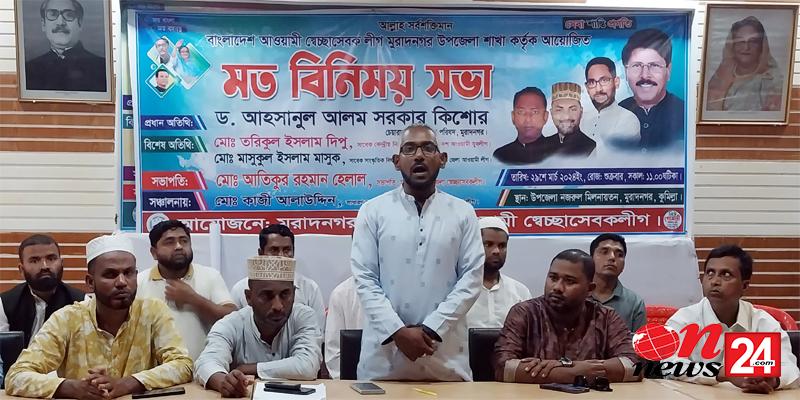 ড. আহসানুল আলম সরকার কিশোর শুক্রবার দুপুরে কুমিল্লার মুরাদনগর উপজেলা পরিষদ মিলনায়তনে অনুষ্ঠিত উপজেলা স্বেচ্ছাসেবক লীগের সাথে মতবিনিময় সভায় প্রধান অতিথির বক্তব্যে এসব কথা বলেন। এতে বিশেষ অতিথি ছিলেন, দেবিদ্বার উপজেলা স্বেচ্ছাসেবক লীগের সাবেক সাধারণ সম্পাদক মিজাুনর রহমান।