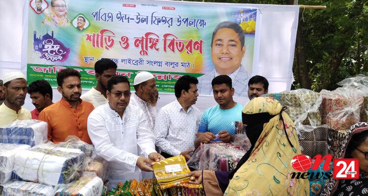 শনিবার (৩০ এপ্রিল) সকালে বাংলাদেশ আওয়ামী লীগের কেন্দ্রীয় স্বাস্থ্য ও জনসংখ্যা উপ কমিটির সদস্য, বাংলাদেশ ইউনিয়ন পরিষদ ফোরামের সাংগঠনিক সম্পাদক ও সোনারগাঁ উপজেলা আওয়ামী যুবলীগের সিনিয়র সহ-সভাপতি চেয়ারম্যান জাহিদ হাসান জিন্নাহ প্রায় ২ হাজার পরিবারের মাঝে এ ঈঁদ উপহার সামগ্রী বিতরণ করেন। ঈঁদ উপহার সামগ্রীর মধ্যে ছিল শাড়ি, লুঙ্গি ও নগদ অর্থ।