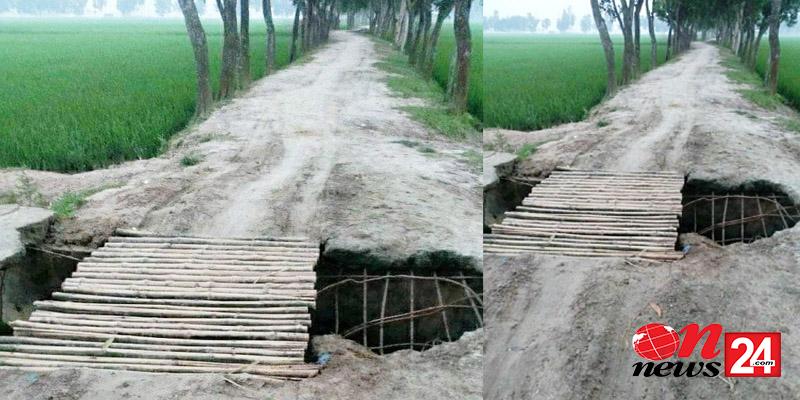 দিনাজপুরের হিলিতে কালভার্টের মাঝখানে ঢালাই ভেঙ্গে পড়ায় মরণ ফাঁদে পরিণত হয়েছে সেই কালভার্টটি । বিকল্প কোন সড়ক না থাকায় সেই কালভার্টের উপর বাশের চাটাই দিয়ে চরম ঝুকি নিয়ে চলাচল করছে শত শত গ্রামবাসী। এতে করে যেকোন সময় ওই স্থানে ভ্যান রিক্সা পড়ে গিয়ে দুর্ঘটনার আশংকা করছেন অনেকে, অবিলম্বে কালভার্টটি নির্মানের দাবী জানিয়েছেন স্থানীয়রা।