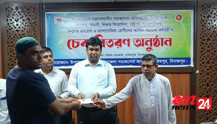 রোগে আক্রান্ত রোগীদের মাঝে এসব আর্থিক সহায়তার চেক বিতরণ করেন হাকিমপুর উপজেলা নির্বাহী কর্মকর্তা ও উপজেলা প্রশাসক অমিত রায়।
