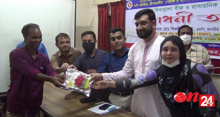 হিলিতে ক্ষুদ্র ও প্রান্তিক পর্যায়ের কৃষকদের মাঝে বিনামুল্যে বীজ ও সার বিতরন