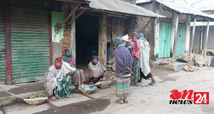 হিলিতে শীতের প্রকোপ বেশি,কাজ না পেয়ে বিপাকে দিনমজুররা
