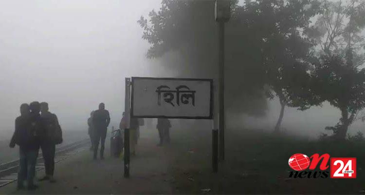 হিলিতে ঘন কুয়াশার সাথে জেঁকে বসেছে তীব্র শীত