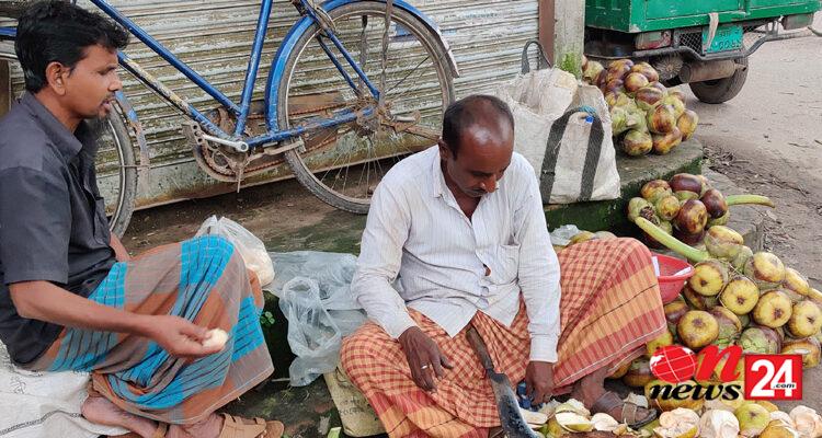 দিনাজপুরের হিলির বাজারে উঠতে শুরু করেছে মৌসুমি নতুন ফল তালের শ্বাস। নতুন এই ফলের স্বাদ নিতে তালের শ্বাসের দোকানে ভিড় করছেন ক্রেতারা অনেকে কিনলেও দাম বেশীর কারনে কেউ কেউ না কিনেই ফিরে যাচ্ছেন।