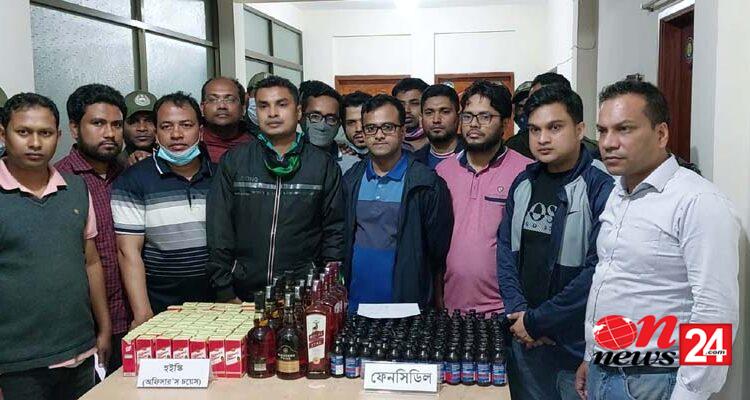 হিলি স্থলবন্দরে আমদানিকৃত পন্যের ট্রাক থেকে ফেন্সিডিল ও মদ উদ্ধার