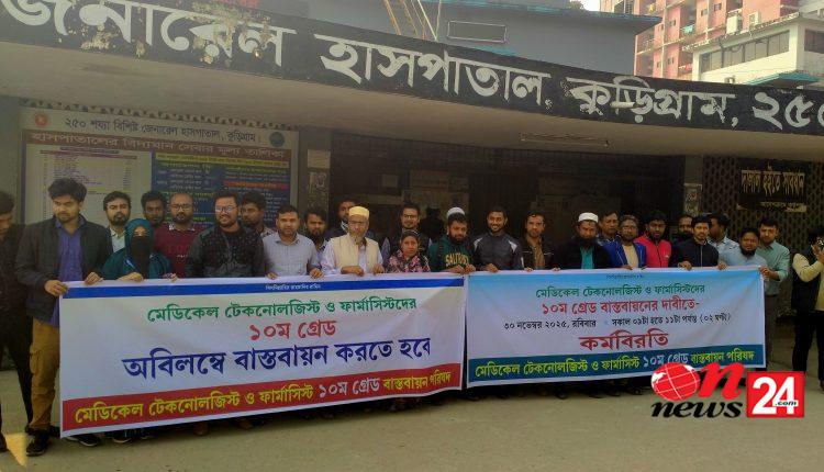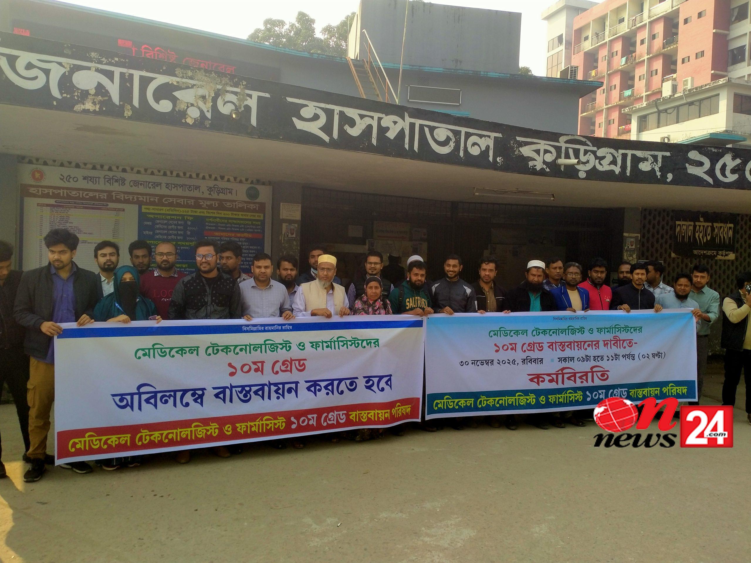 ১০ম গ্রেডের দাবিতে কুড়িগ্রামে মেডিকেল টেকনোলজিস্ট ও ডিপ্লোমা ফার্মাসিস্টদের কর্মবিরতি