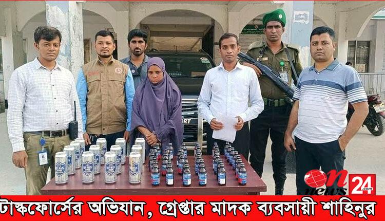 সদর দক্ষিণ উপজেলার রাজেশপুর এলাকা থেকে ৪৩ বোতল ফেন্সিডিল ও ১৩ ক্যান বিয়ারসহ টাস্কফোর্সের অভিযান গ্রেফতার মাদক ব্যবসায়ী শাহিনুর।