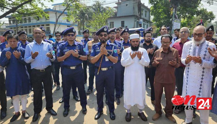পুষ্পস্তবক অর্পণ শেষে বীর শহীদদের আত্মার মাগফেরাত কামনা করে বিশেষ প্রার্থনা করা হয়।