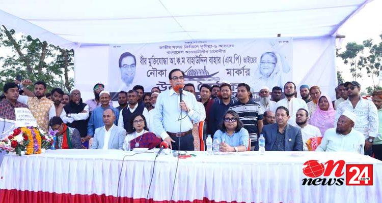 কুমিল্লা মহানগর আওয়ামী লীগের সভাপতি বীর মুক্তিযোদ্ধা আ ক ম বাহাউদ্দিন বাহার এমপি বলেছেন, সেই ১৯৮৪ সালে পৌর নির্বাচনে দুইটি ওয়াদা করেছিলাম। নির্বাচিত হলে সকল মানুষের জন্য আমার দরজা খোলা থাকবে। সততার সাথে কাজ করব ,কোন অন্যায়কে প্রশ্রয় দিব না। ৩৯ বছরেও ওয়াদার বরখেলাপ করিনি। কোন অন্যায়কারীকে ছাড় দেইনি। কুমিল্লার মানুষের মঙ্গলে কাজ করেছি। কুমিল্লার উন্নয়নের প্রশ্নে আপোষ করিনি। আপনারা দেখেছেন, বিভাগ দাবীতে আপার (শেখ হাসিনা) সাথেও কুমিল্লা, কুমিল্লাই বলেছি। নেত্রী বলেছেন,মেঘনা। আমি বলেছি না আপা, কুমিল্লা। মোশতাকের কুমিল্লা বলে আমাদের অপবাদ দেওয়া হয়।৭ জানুয়ারী ভোটের মাধ্যমে প্রমাণ করতে হবে এই কুমিল্লা শেখ হাসিনার। আমাদের মায়েদের সবছেয়ে বেশি সম্মানিত করেছেন বঙ্গবন্ধু কন্যা শেখ হাসিনা। আগামী ৭ তারিখ পুরুষের আগে মায়েরা কেন্দ্রেগিয়ে নৌকায় ভোট দিবেন। এই নৌকার মালিক শেখ হাসিনা, এই নৌকার মালিক বঙ্গবন্ধু।