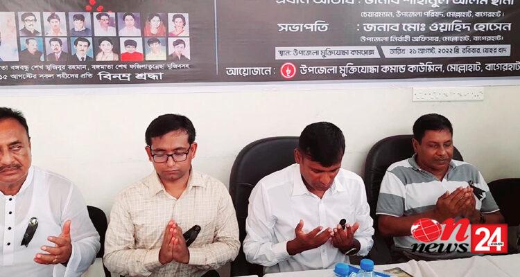বাগেরহাটের মোল্লাহাট উপজেলা মুক্তিযোদ্ধা কমান্ড কাউন্সিলের আয়োজনে জাতির পিতা বঙ্গবন্ধু শেখ মুজিবুর রহমান এঁর ৪৭ তম শাহাদত বার্ষিকী ও জাতীয় শোক দিবস উপলক্ষ্যে আলোচনা সভা ও দোয়া মাহফিল অনুষ্ঠিত হয়েছে।