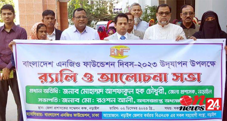 বাংলাদেশ এনজিও ফাউন্ডেশন দিবস উপলক্ষে নড়াইলে র্যালি ও আলোচনা সভা অনুষ্ঠিত হয়েছে।