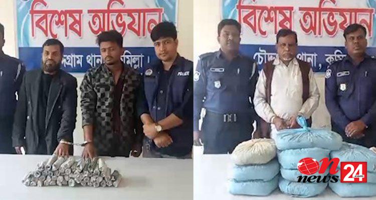 পুলিশ জানায়, গোপন সংবাদের ভিত্তিতে চৌদ্দগ্রাম উপজেলার ৩নং কালিকাপুর ইউপির ছুপুয়া এলাকার ঢাকা-চট্টগ্রাম মহাসড়কের হাইওয়ে ট্রাক হোটেল এন্ড রেস্টুরেন্ট এর সামনে থেকে ৫০ টি গাঁজার রোল ও মাদক বিক্রয়ের নগদ দুই হাজার তিনশত টাকাসহ দুই জনকে গ্রেফতার করে । পরে আরেকটি অভিযানে মহাসড়কের হাড়িসর্দার এলাকা থেকে ১০কেজি গাঁজাসহ আরোও একজনকে গ্রেফতার করা হয়। গ্রেফতারকৃতরা হলেন উপজেলার ধনুসাড়া উত্তরপাড়া গ্রামের জালাল উদ্দিন, অলিপুর গ্রামের রবিউল হোসেন রবিন, নারায়নগঞ্জের রাম গোবিন্দ গাওঁ গ্রামের মফিজ উদ্দিন।