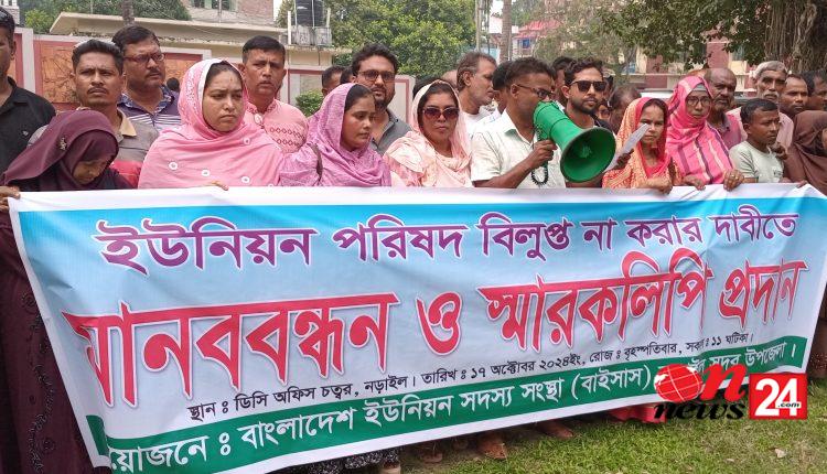 ইউনিয়ন পরিষদের সদস্যদের বহাল রাখার দাবিতে নড়াইলে মানববন্ধন