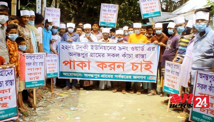 কুমিল্লার মুরাদনগর উপজেলার বাঙ্গরা বাজার থানাধীন টনকি ইউনিয়নের অনন্তপুর গ্রামের সকল কাচাঁ রাস্তা পাকা করার দাবিতে মানববন্ধন করেছে এলাকাবাসী। শুক্রবার দুপুরে অনন্তপুর চৌরাস্তায় ইউপি সদস্য আব্দুর রহিমের সভাপতিত্বে ওই মানববন্ধন অনুষ্ঠিত হয়। মানববন্ধনে বক্তব্য রাখেন, উপজেলা ছাত্রলীগের সাবেক সভাপতি আব্দুল গাফ্ফার, পল্লী চিকিৎসক রুস্তম আলী, ব্যবসায়ী সোহেল ভুইয়া, আব্দুল আলীম, মনির হোসেন ও কলেজ ছাত্র ইমরান সরকার প্রমুখ।